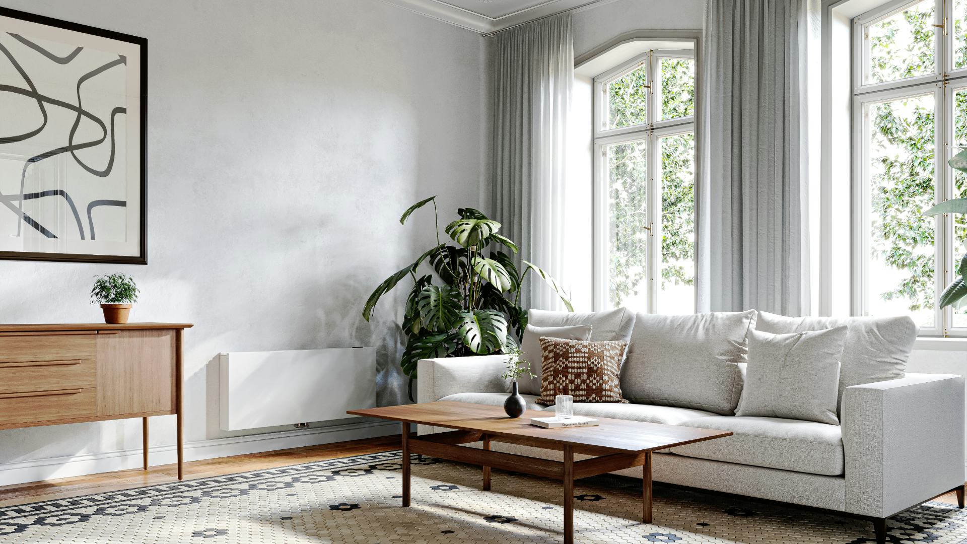 De geïntegreerde tiptoetsbediening stelt bewoners in staat lokaal de gewenste temperatuur in te stellen. De TPT-regeling past de ventilatorsnelheid automatisch aan. Daarmee heeft de radiator voor warmtepompen drie standen: extra stil, comfort of maximale snelheid voor snelle opwarming of koeling. Bij de stilste stand (26 dBA) functioneert het systeem fluisterstil. In de comfortstand blijft het geluidsniveau beperkt tot 30 dBA, prettig voor ieder gebruiksmoment.