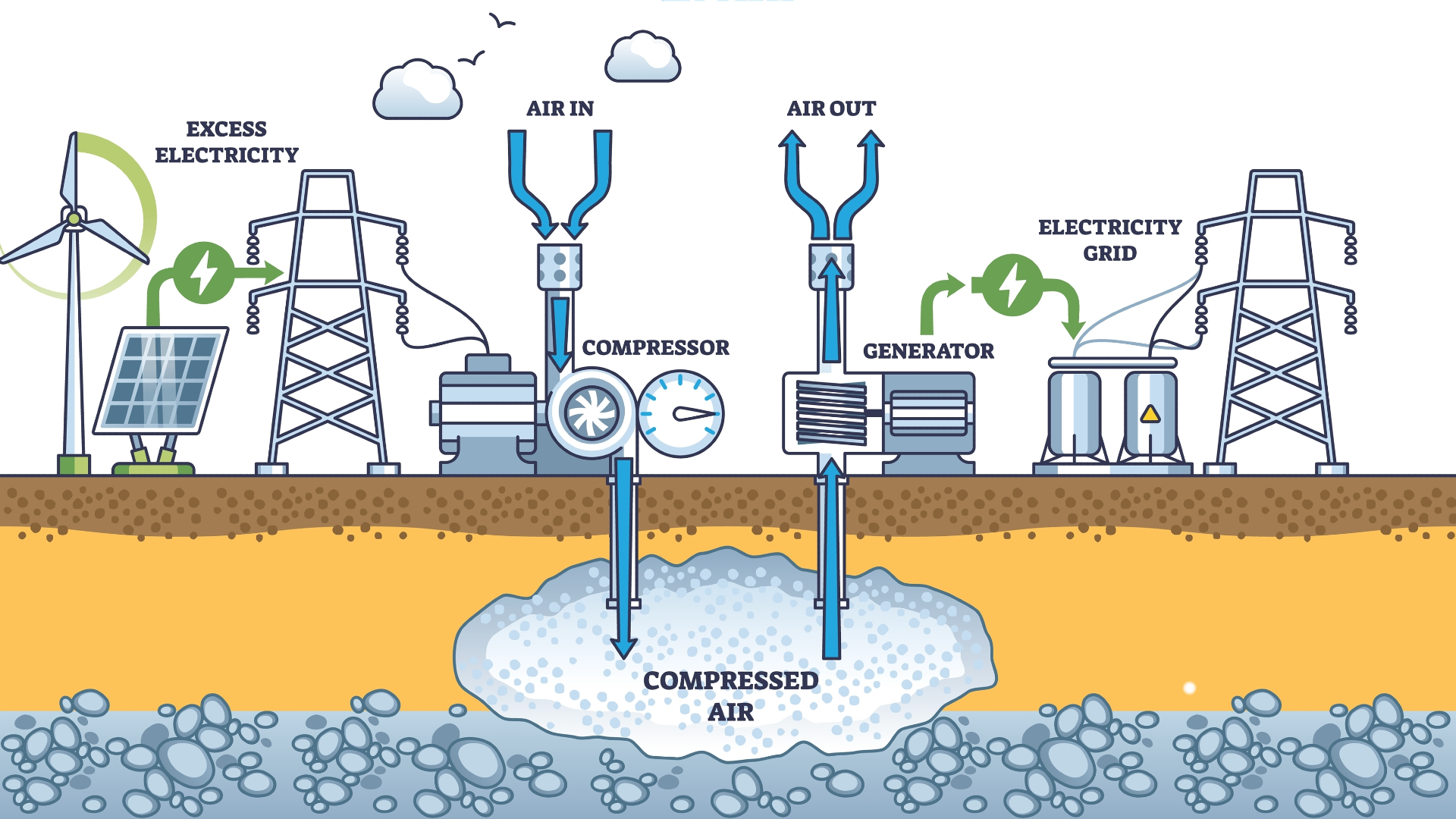 Groningen krijgt een van de grootste persluchtbatterijen ter wereld. Een 320 MW compressed air energy storage (CAES) in de zoutcavernes van Zuidwending kan de hele provincie 3,5 dag van energie voorzien. Ook op kleinere schaal is perslucht een interessant alternatief voor chemische batterijen. De eenvoudige techniek kan zonder schaarse grondstoffen en gaat heel lang mee.