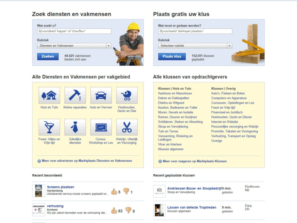 Zestig procent van de consumenten op zoek naar een vakman maakt daarbij gebruik van het internet. Dit blijkt uit een onderzoek van Qudata Markt- & Trendanalyses in opdracht van Marktplaats Klussen onder ruim 1.600 consumenten.