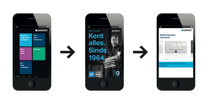 Met de zogenoemde ProApp van Geberit kan informatie opgevraagd worden over alle inbouwreservoirs die in de afgelopen vijftig jaar door deze fabrikant zijn ontwikkeld.
