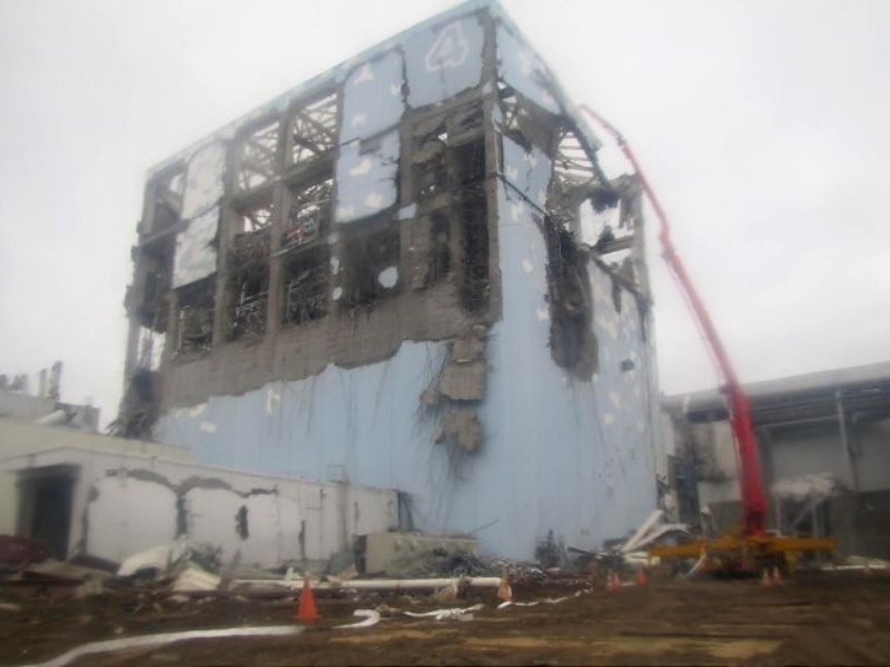 In de kerncentrale van Fukushima pompt een mobiele betonpomp water in reactorgebouw 4. Dergelijke betonpompen werden al eerder bij een kernramp ingezet. Ze zorgden ervoor dat de kerncentrale in Tsjernobyl na de ramp door een betonnen sarcofaag werd overkoepeld.