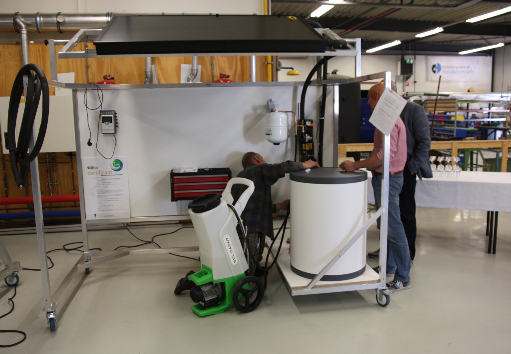 In het nieuwe Practicumlokaal voor zonnewarmtesystemen in Den Bosch leren installateurs en monteurs vier verschillende zonnewarmtesystemen installeren, inbedrijfstellen en onderhouden. Het lokaal, onderdeel van het Praktijkcentrum Installatiewerk Nederland, werd op 5 oktober officieel in gebruik genomen.